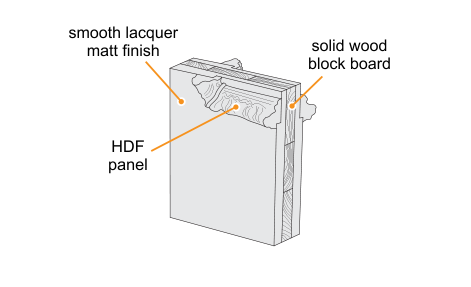 • door panel structure: engineered solid wood block board covered in HDF panel for milling